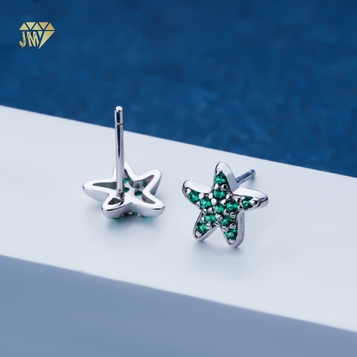 These star-shaped stud earrings combine white moissanite and green zircon in 925 sterling silver. Perfect for beach weddings, summer accessories, or custom promotional gifts. Direct factory pricing with OEM/ODM services available.