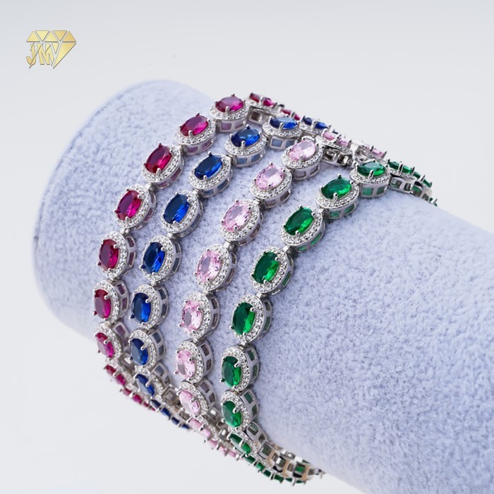 Savor the sophistication of our friendship bracelets made of 925 silver, which are designed only for ladies who value fine jewelry. A delicate halo of smaller stones encircles the center stones of these bracelets, which come in a stunning array of gemstone options, including vivid red, deep blue, soft pink, and lush green. Serving wholesalers and retailers in North America, South America, and Europe is our area of expertise as a top Chinese jewelry manufacturer. Our all-inclusive services, which include worldwide shipping and custom design, make it simple for you to stock up on these top-selling bracelets. MOQ: 3 pieces per item