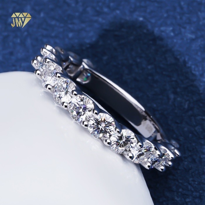 Professional jewelry manufacturer, providing OEM for North American jewelers for half - eternity wedding bands! Made of 925 silver with rhodium plating, round moissanites inlaid in the front. Services include design, customization, production, packaging, and global shipping. Help create unique jewelry products, suitable for wedding scenarios, and enhance the competitiveness of jewelry business.
