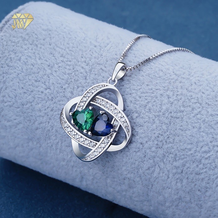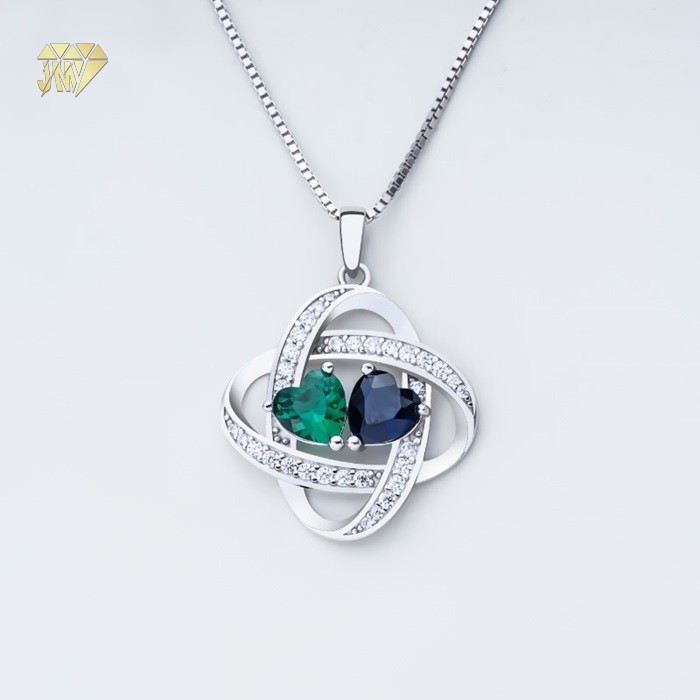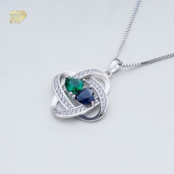 Hot sale one of the most popular necklace pendants with a 925 sterling silver heart pendant adorned with green and blue zirconia with Rhodium plated for brilliance and durability, perfect for gifts, anniversaries, and daily wear. Worldwide shipping available.