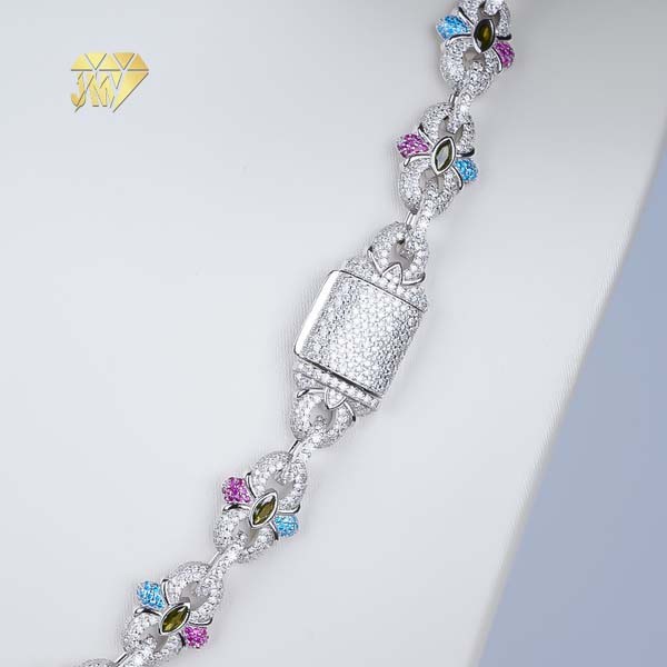 We use flower shape as design,it breaks traditional design,Personalized cuban link chain become more fashion and different,925 silver rhodium plated,ensuring the luster and durability,colorful zircon inlaid,it captures the colors of nature,becoming you the focus in the crowd.