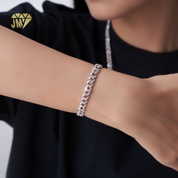 wholesale silver bracelets suppliers, we offer rhodium-plated 925 sterling silver moissanite Cuban link bracelets for global markets. Factory-direct, OEM/ODM, REACH/PROP65 compliant, with global shipping.